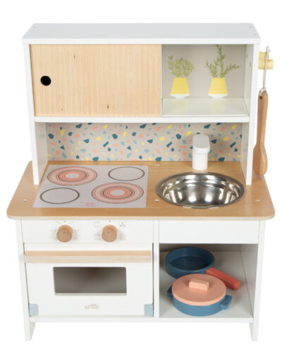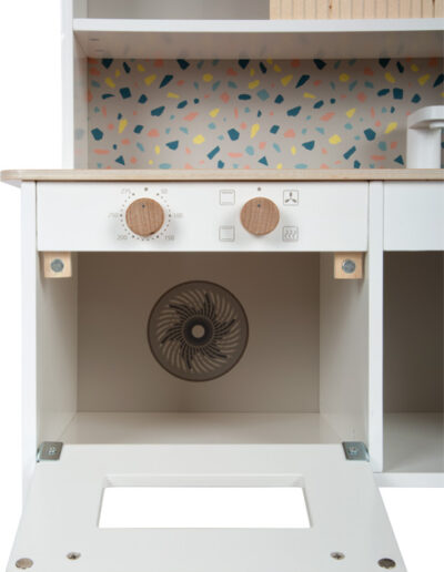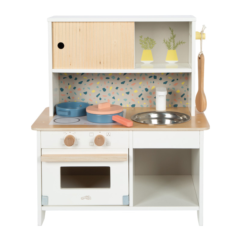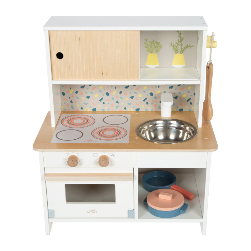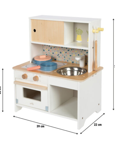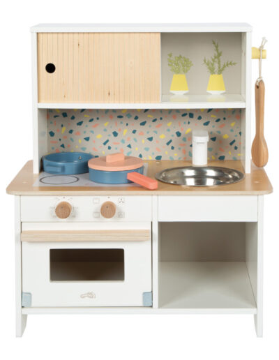 Die kompakte Kinderküche im Terrazzo-Look vereint platzsparendes Design mit umfangreichen Spielmöglichkeiten und ist damit perfekt geeignet für kleine Wohnungen oder als Zweitküche bei Oma und Opa. Gut ausgestattet und ready to play. Kinder lernen ganz nebenbei den Umgang mit alltäglichen Küchenuntensilien und stärken ihre sozialen Kompetenzen beim gemeinsamen Spiel.