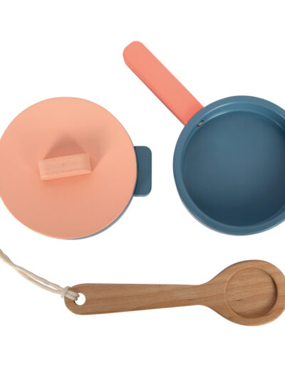 Große Kochfreude auf kleinem Raum! Diese weiße, moderne Küche mit Terazzo-Rückwand ist der ideale Einstieg ins kreative Rollenspiel. Trotz ihrer kompakten Maße bringt sie alles mit, was kleine Köch:innen brauchen: einen Herd mit drehbaren Klick-Knöpfen, einen Backofen mit magnetisch schließender Tür und ein herausnehmbares Spülbecken aus Metall – dazu eine Pfanne, einen Topf mit Deckel und einen Kochlöffel aus Holz. Das angesagte Terrazzo-Design der Küchenwand macht die Tischküche zu einem stilvollen Hingucker im Kinderzimmer. Dank der Arbeitshöhe von ca. 22 cm eignet sich die Küche nicht nur perfekt für kleine Kinderhände, sondern auch hervorragend als "Puppenküche" für Rollenspiele mit großen Puppen (ca. 43 cm). So können auch die liebsten Spielgefährten am Kochspaß teilhaben! Die perfekte Kombi aus Stil, Funktion und Spielspaß!